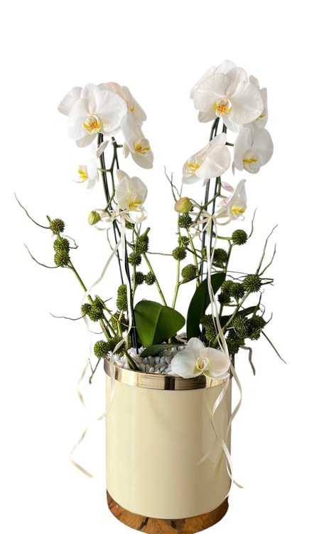 «ارکیده سفید در گلدان طلایی» ترکیبی چشمنواز از لطافت و شکوه است؛ گلی که با رنگ سفیدش نماد پاکی، آرامش و زیبایی بیانتهاست، و در گلدانی طلایی جای گرفته تا جلوهای از تجمل و ظرافت را به نمایش بگذارد. این اثر نهتنها یک گیاه تزئینی است، بلکه پیامی از عشق، احترام و سلیقهی منحصربهفرد شماست. مناسب برای هدیه دادن یا آراستن فضاهای خاص، این مجموعه میتواند هر محیطی را به فضایی دلنشین و الهامبخش تبدیل کند.